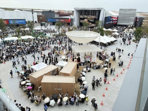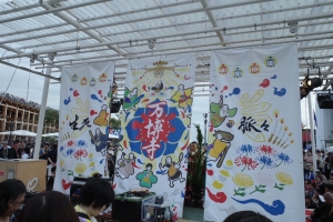 万博寺とは、万博に一日限り建立されるお寺という趣旨のイベントで、宗派の違うお坊さんが200名以上も集まりました。11時頃から雅楽、生前葬セレモニー、テクノ法要、漫才説法ライブなどユニークなプログラムが沢山ありました。数珠作りや御朱印もとても大盛況でした。