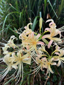 妙見寺では赤いものもありますが、白い彼岸花が咲きました。先々代の住職が植えていたものです。白い彼岸花も綺麗ですね。