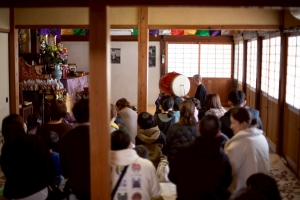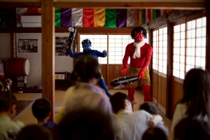 節分祭終わって、ある男の子が私の方へかけよってきて、「鬼さん人間やってよかった!最後仲良くなれて良かった!」と安堵と嬉しさがまざった表情で私に話しかけてくれました。最後はお菓子を配り笑顔で帰る子供たち。小さいうちは鬼に泣いてしまう子もいますが年をかさねるごとに次第と慣れていきます。